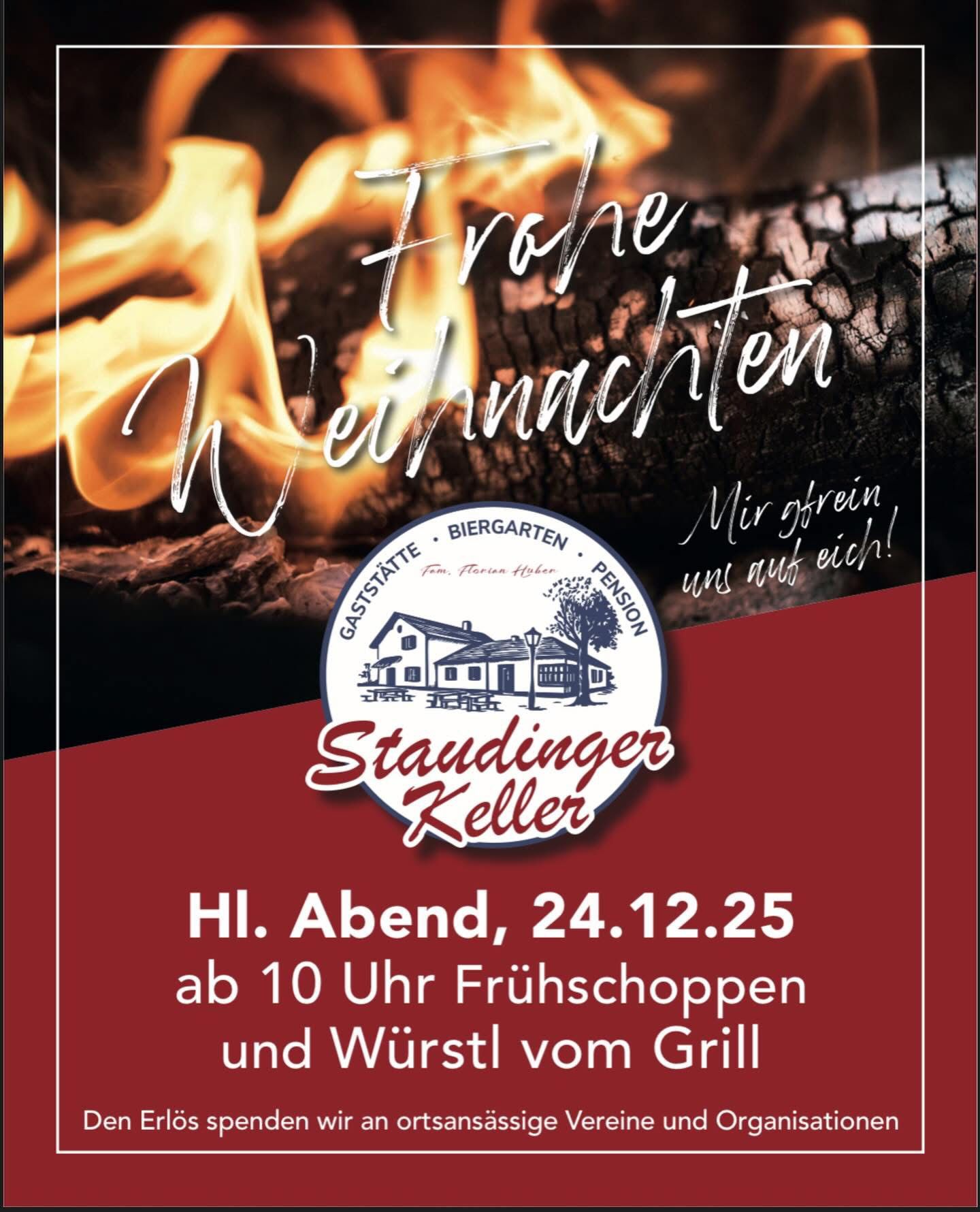 Am 24.12.2025 gibt es ab 10 Uhr Würstl vom Grill. Den Erlös spendet die Familie Huber an ortsansässige Vereine und Organisationen.